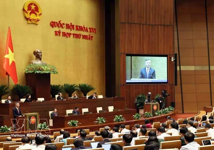 越南财政部长吴文俊在第十六届国会第一次会议上就国会代表提出有关经济社会发展计划的一些问题作出说明(图片来源:越通社) |