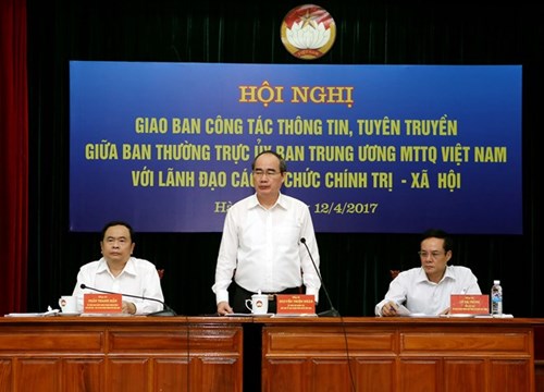 2017年,越南祖国阵线中央委员会和各政治社会团体着力开展“全民团结建设新农村、文明城市”运动;“团结、创新、努力提高产品产能和质量及融入国际社会”运动;“越南人优先使用越南货”运动等。此外,祖国阵线和各政治社会团体为全国青年有效开展创新创业活动提供支持;继续组团慰问各民族同胞模范个人。