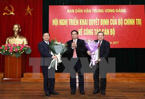 越共中央政治局委员、中央书记处书记、中央组织部部长范明正,越共中央政治局委员、中央民运部部长张氏梅共同主持会议。