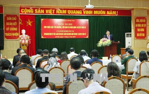 政府宗教委员会5月11日召开会议,向各国驻越大使、各国驻河内外交使团和国内各部委等代表介绍《信仰宗教法》和《宗教信仰法实施计划》及关于《宗教信仰法》实施细则的162/2017/NĐ-CP号议定书。