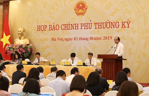 越南政府办公厅主任梅进勇主持召开政府例行新闻发布会(图片来源:越通社) |