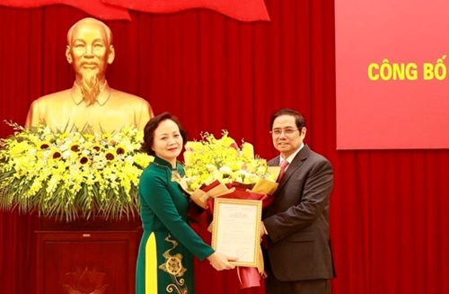 越共中央组织部部长范明正向范氏青茶同志颁发调任决定(图片来源:baochinhphu.vn) |