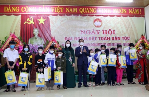 国家副主席武氏映春向广治省贫困儿童赠送礼物(图片来源:越通社) |