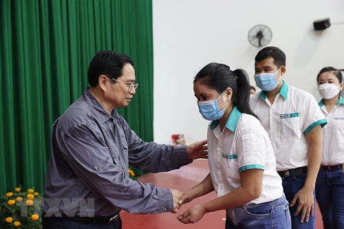 越南政府总理范明政亲切慰问永隆省贫困工人(图片来源:越通社) |
