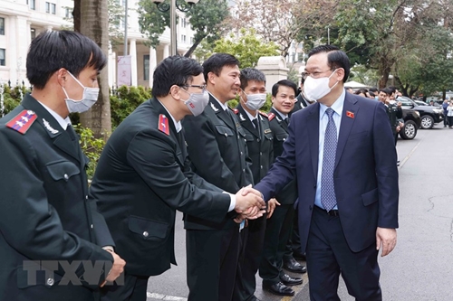 国会主席王廷惠亲切慰问工贸部的干部(图片来源:越通社) |