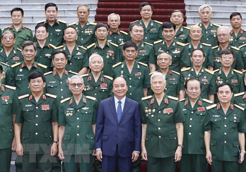 值此伤残军人与烈士日75周年即将到来之际,7月13日下午,越南国家主席阮春福与河宣(今为河江省)渭川战线全国老战士协会联络委员会代表会面。
