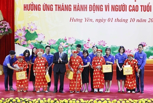 阮春福代表党和国家领导人向全国1200万老年人致以亲切的问候和崇高的敬意;热烈表扬越南老年人为国家建设和保护事业所做出的积极贡献。