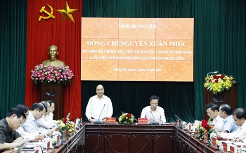 阮春福主席与兴安省委常委会举行会议(图片来源:越通社) |