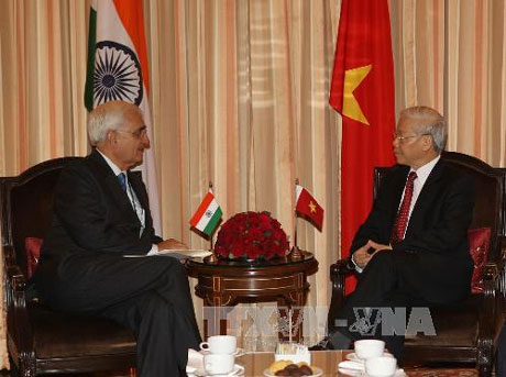 阮富仲总书记会见印度外交部长萨尔曼·库尔希德(Salman Khurshid)(图片来源:越通社)