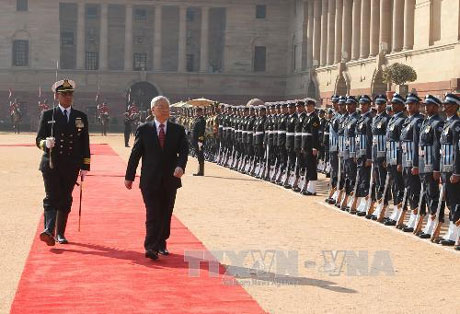 印度总理为越共中央总书记阮富仲举行隆重欢迎仪式