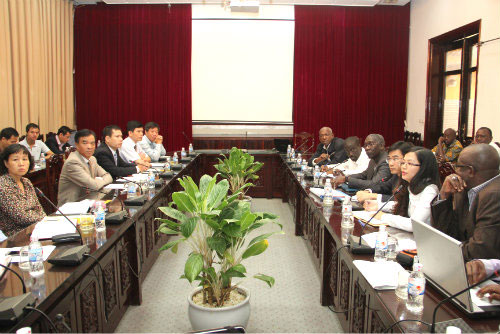 | 越南交通运输部代表团与2013年10月访问越南的塞内加尔工作代表团举行工作会议(图片来源:mt.gov.vn) |