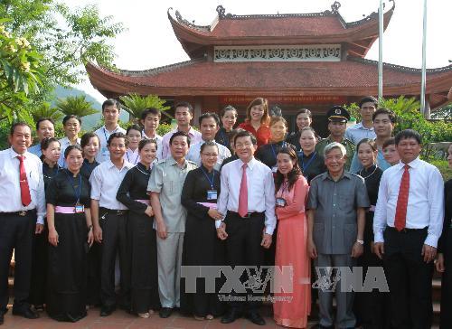 | 国家主席张晋创与太原省领导在太原省定化县定化革命安全区(ATK)历史遗迹区合影留念。(图片来源:越通社) |