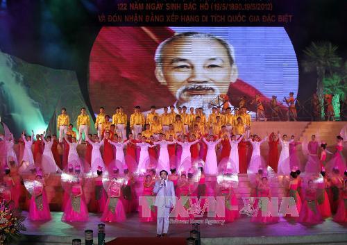 5月19日晚在太原省太原市福春乡山谷湖旅游区,太原省隆重举行胡志明主席回到太原安全区领导抗法战争65周年、胡志明主席诞辰122周年和定化安全区被列入国家历史遗迹区名录的纪念典礼。国家主席张晋创、原越共中央总书记黎可漂以及党国家多名领导出席纪念典礼。
