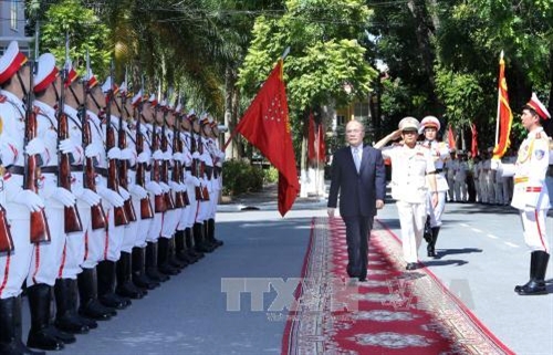 | 阮生雄主席检阅越南人民安全学院仪仗队(图片来源:越通社) |