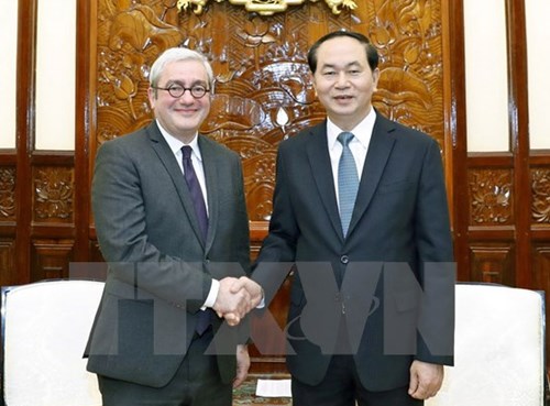 越南国家主席陈大光会见法国新闻社首席执行官胡格(图片来源:越通社)