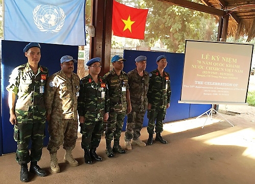 在庆典上,阮春成中校代表越南人民军驻中非维和官兵重申了胡志明主席于1945年8月19日在巴亭广场宣读《独立宣言》,宣布越南民主共和国(今越南社会主义共和国)成立这一事件的重大历史意义。历经整整70年的艰苦奋斗,越南在发展经济、捍卫国家主权和领土完整等方面都取得了显著成就。奉行深化及全面融入国际社会的对外政策,越南已经和正在肯定自己能够成为地区乃至世界的积极且负责任一员,其中有参加联合国维和行动的力量。除了上述3位参谋军官外,越南还有2位联络军官在联合国南苏丹特派团执行维和任务。目前,越南也在抓紧时间,为未来派遣二级野战医院和工兵连参加联合国维和行动做好充分准备。