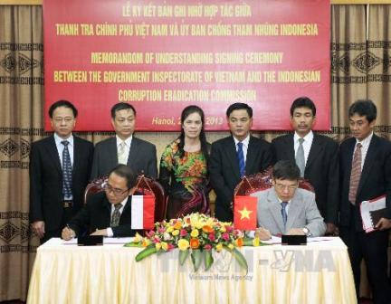 越南政府监察总署与印度尼西亚反腐败委员会将在业务培训和专家交流等领域加强合作,旨在分享关于发现贪污行为、涉嫌贪污对象的活动方式和社区教育宣传,提高人民对贪污腐败意识等的经验。