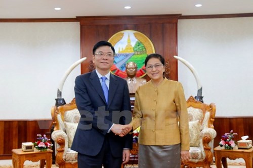 老挝国会主席巴妮·雅陶都接见越南司法部长黎成龙(图片来源:vietnamplus.vn)