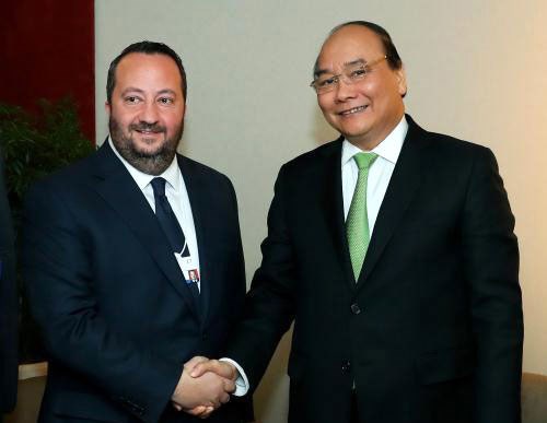 在出席世界经济论坛2017年年会期间,1月20日下午,越南政府总理阮春福会见CNN国际新闻网络首席商务官拉尼·拉得(Rani R. Raad)。