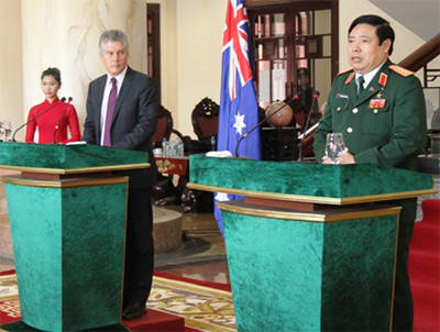 越南国防部部长冯光青大将称,双方已在联合国维和活动的合作,分享特种兵训练经验,海军力量互访,分享搜救领域的经验等领域展开了讨论并达成重要共识。“越南希望澳大利亚国防部部长史密斯在自己的岗位上,竭尽全力帮助越南克服战争后果和战后扫雷工作”,冯光青大将说道。
