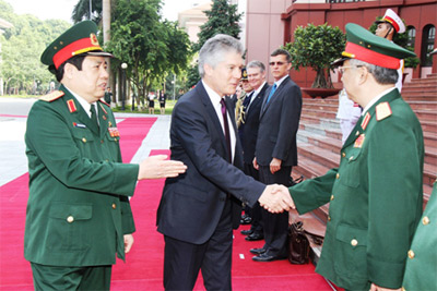 人民军报 记者保忠,武雄报道:8月29日在越南国防部总部,越南国防部部长冯光青大将会见了澳大利亚国防部部长史蒂文·史密斯。双方计划自2013年起,将进行常年国防部长级战略对话。