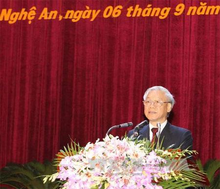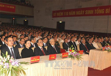 越共中央总书记阮富仲在纪念黎鸿峰总书记诞辰110周年大会上发表讲话(图片来源:越通社)