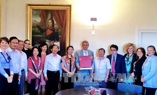 当天,越南国会代表团同圣马力诺教育和文化部长莫尔甘蒂(Giuseppe Maria Morganti)举行工作会议。