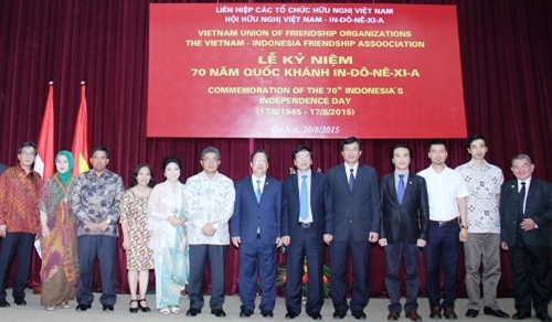 8月20日,越南友好组织联合会同越印友协在河内联合举行了印尼国庆70周年纪念仪式。越南友好组织联合会主席武春鸿,越南之声广播电台台长、越印友协主席阮登进,印尼驻越大使马约法恩(Mayerfas)等代表出席。