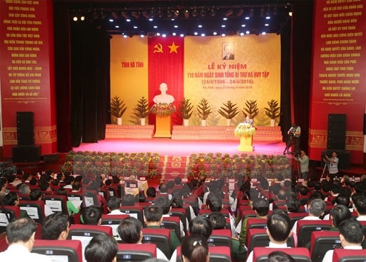 已故越共中央总书记何辉集诞辰110周年纪念典礼4月23日在河静省文化中心隆重举行。越共中央总书记阮富仲,原越共中央中总书记农德孟,原国会主席阮文安、阮生雄,党、国家和越南祖国阵线领导,中央和河静省各部委行业领导,已故总书记何辉集家属,全国各省市领导以及老挝若干省市领导等代表一同出席。