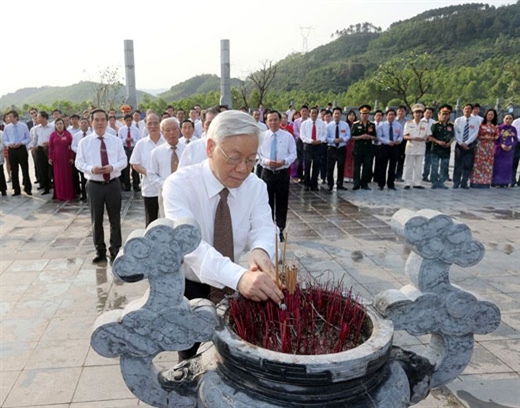 | 阮富仲总书记同党、国家和祖国阵线代表团已前往已故总书记何辉集陵墓上香献花和敬香(图片来源:越通社) |