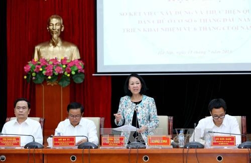 今年上半年,各级党委、政府、祖国阵线和政治社会组织领导、指导和组织落实党和国家有关基层民主规制的主张和法律法规,将其与实现越共十二大决议、各级党代会决议、第十四届国会代表和2016-2021年任期各级人民议会代表选举相结合。党的民主规制得到扩展,各级党委领导方式得以革新。各级政府管理工作朝着具体、贴近人民、为人民服务的方向强劲转移,国家政策得以民主、公开、透明实现。