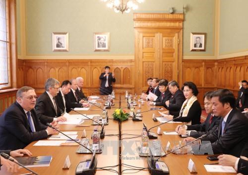 阮氏金银高度评价越南与匈牙利多方面传统友好合作关系的进展。她强调,越南一向铭记匈牙利政府和人民对越南保卫祖国和国家建设事业给予越南人民的宝贵帮助;感谢匈牙利支持越南竞选联合国经济及社会理事会(任期2016-2018年)和承诺支持越南竞选联合国安全理事会(任期2020-2021年)。