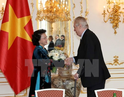 访问捷克共和国期间,当地时间4月12日中午,越南国会主席阮氏金银会见捷克共和国总统米洛什·泽曼(Milos Zeman)。