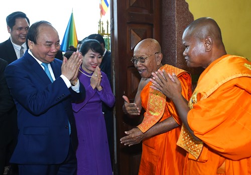 阮春福总理会见柬埔寨大宗派最高僧王狄旺长老和柬越友好协会代表团