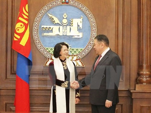 越南国家副主席邓氏玉盛分别会见蒙古国领导人