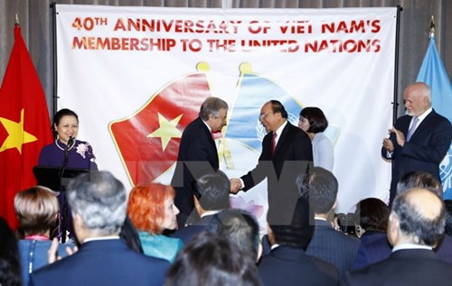 越南加入联合国40周年纪念典礼5月30日在美国纽约联合国总部举行。越南政府总理阮春福、联合国秘书长安东尼奥·古特雷斯、联合国大会主席汤普森、联合国高层官员和各国驻纽约首席代表及大使等一同出席。