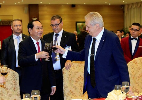 6月7日晚,越南国家主席陈大光和夫人阮氏贤在国际会议中心设宴欢迎捷克共和国总统米洛什·泽曼和夫人泽曼诺娃和捷克高级代表团一行。