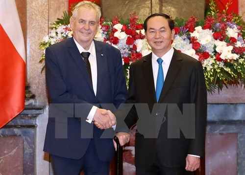越南国家主席陈大光与捷克共和国总统米洛什·泽曼(图片来源:越通社)