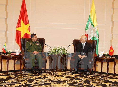 阮富仲会见缅甸国防军总司令敏昂莱