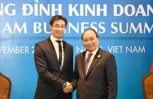 11月7日中午,越南政府总理阮春福在岘港市会见世界经济论坛(WEF)执行董事菲利普·罗斯勒(Philipp Roesler)。