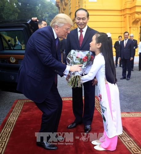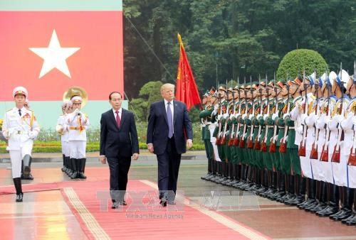 特朗普高度评价越南的活跃发展,越南在地区乃至世界的作用,强调美国重视与越南全面友好合作关系,一直认为,两国应在尊重彼此独立、主权、领土完整和政治制度的基础上推动双方关系发展。特朗普希望此次访问将为进一步加强两国今后全面伙伴关系打下重要基础。