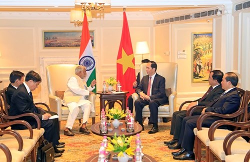 越南国家主席陈大光(右)会见印度越南友好议员小组主席克沙瓦(图片来源:越通社) |