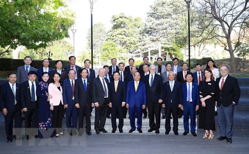 越南政府总理阮春福与澳大利亚国立大学代表合影(图片来源:越通社) |