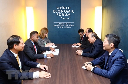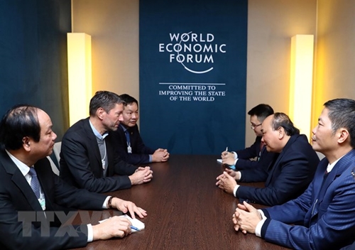 越通社特派记者报道,当地时间1月23日下午在瑞士达沃斯举行的世界经济论坛2019年年会(WEF Davos 2019)间隙,越南政府总理阮春福会见苹果、阿迪达斯、百威英博、宝洁、嘉士伯、脸谱、赛诺菲等世界上领先的跨国集团领导。