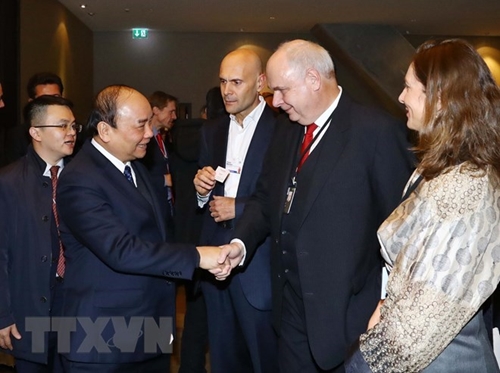 越南政府总理阮春福与世界跨国集团负责人进行对话(图片来源:越通社) |