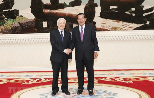 越共中央总书记、国家主席阮富仲会见柬埔寨首相洪森