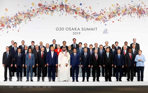当天上午,日本首相安倍晋三举行正式仪式,欢迎越南政府总理阮春福以及G20成员国和嘉宾国元首以及联合国、世界银行WB、国际货币基金组织IMF、世贸组织WTO、经济合作与发展组织OECD等重要的全球多边组织领导人前来出席G20峰会。