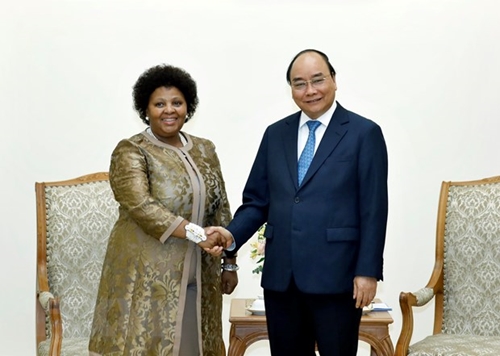 8月22日下午在政府总部,越南政府总理阮春福会见正在访问越南的南非国防部部长诺西维薇·马皮萨·恩卡库拉(Nosiviwe Noluthando Mapisa-Nqakula)。