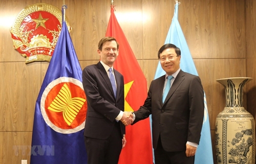 越南政府副总理兼外交部长范平明会见美国政治事务副国务卿戴维•黑尔(图片来源:越通社) |