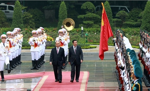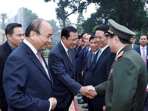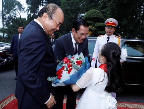 越南政府总理阮春福举行隆重仪式,欢迎柬埔寨首相洪森一行访越(图片来源:越通社)